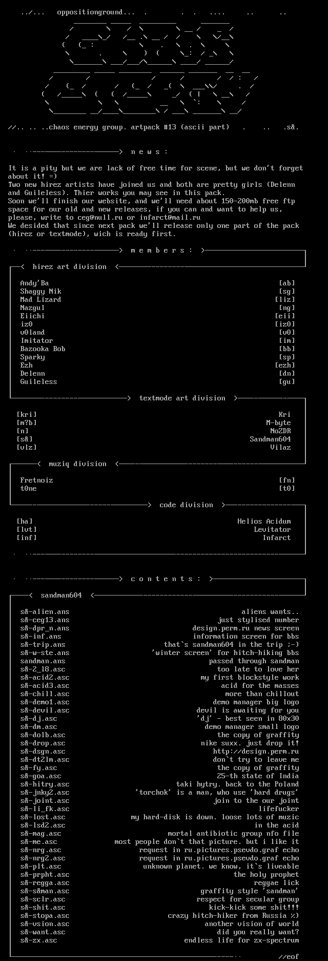 //.. .. ..chaos energy group. artpack 13 ascii part . .. .s.