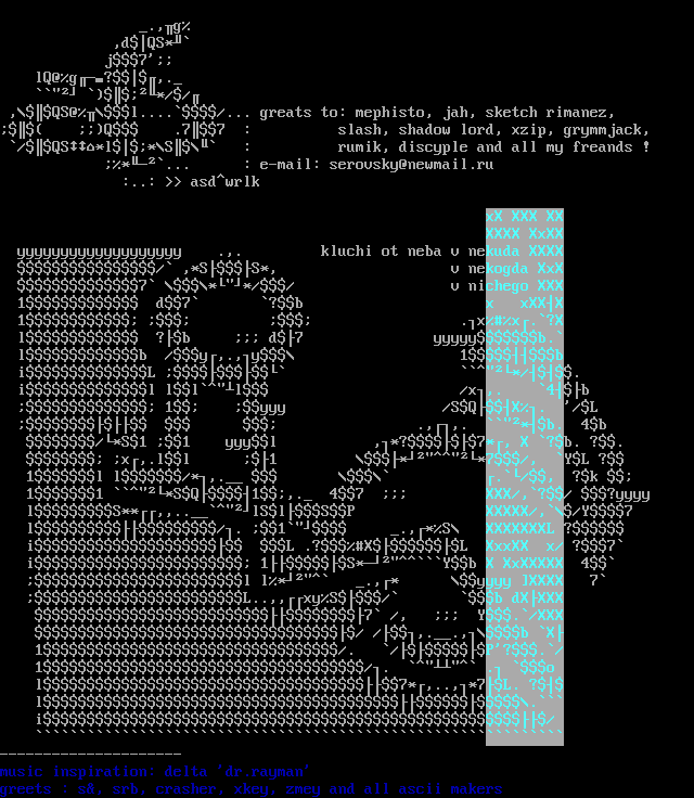greets : s, srb, crasher, xkey, zmey and all ascii makers