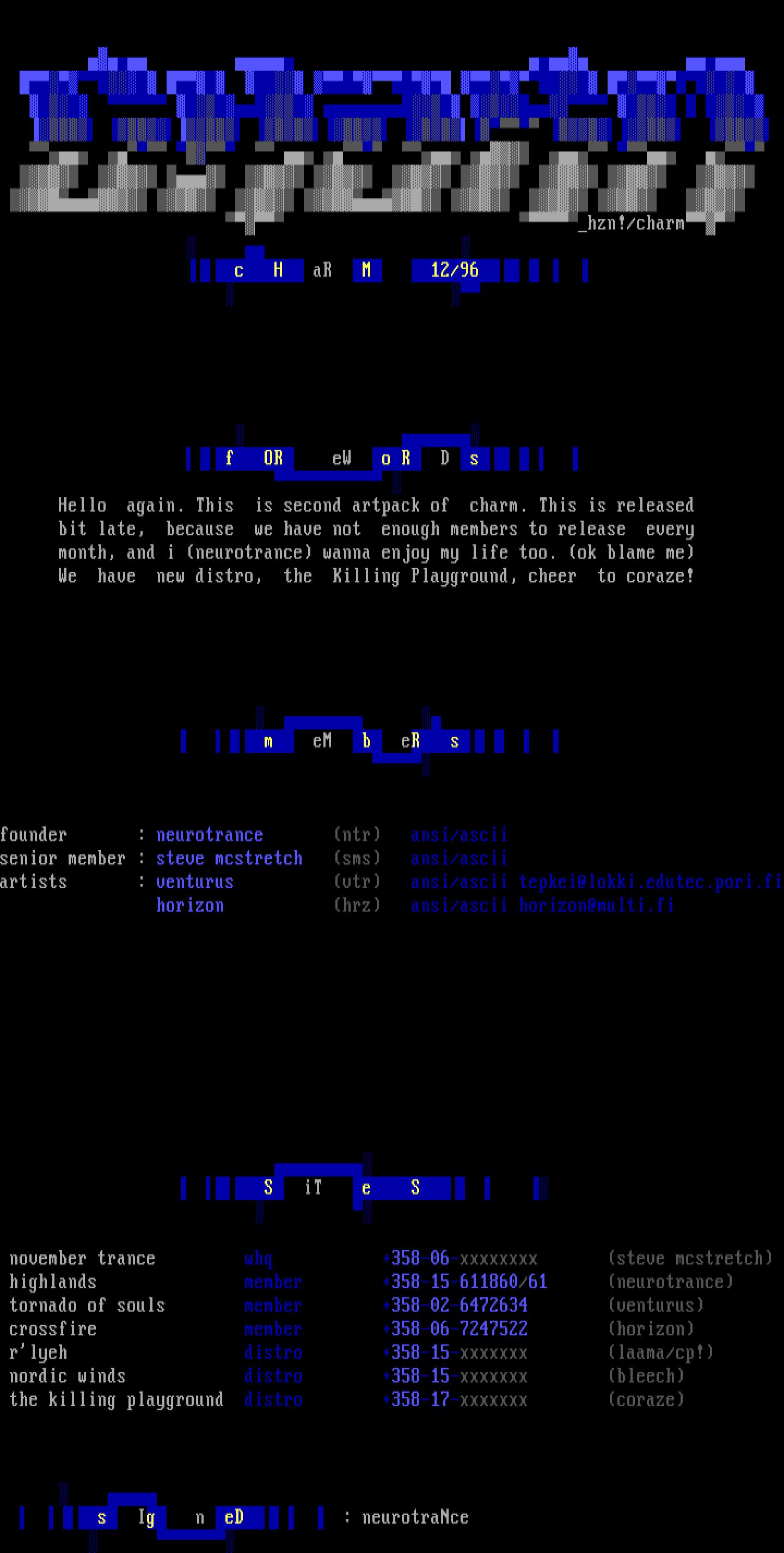 artists : venturus vtr ansi/ascii tepkei@lokki.edutec.pori.fi horizon hrz ansi/ascii horizon@multi.fi