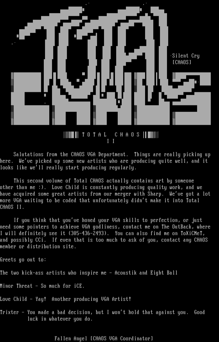 Salutations from the CHAOS VGA Department. Things are really picking up