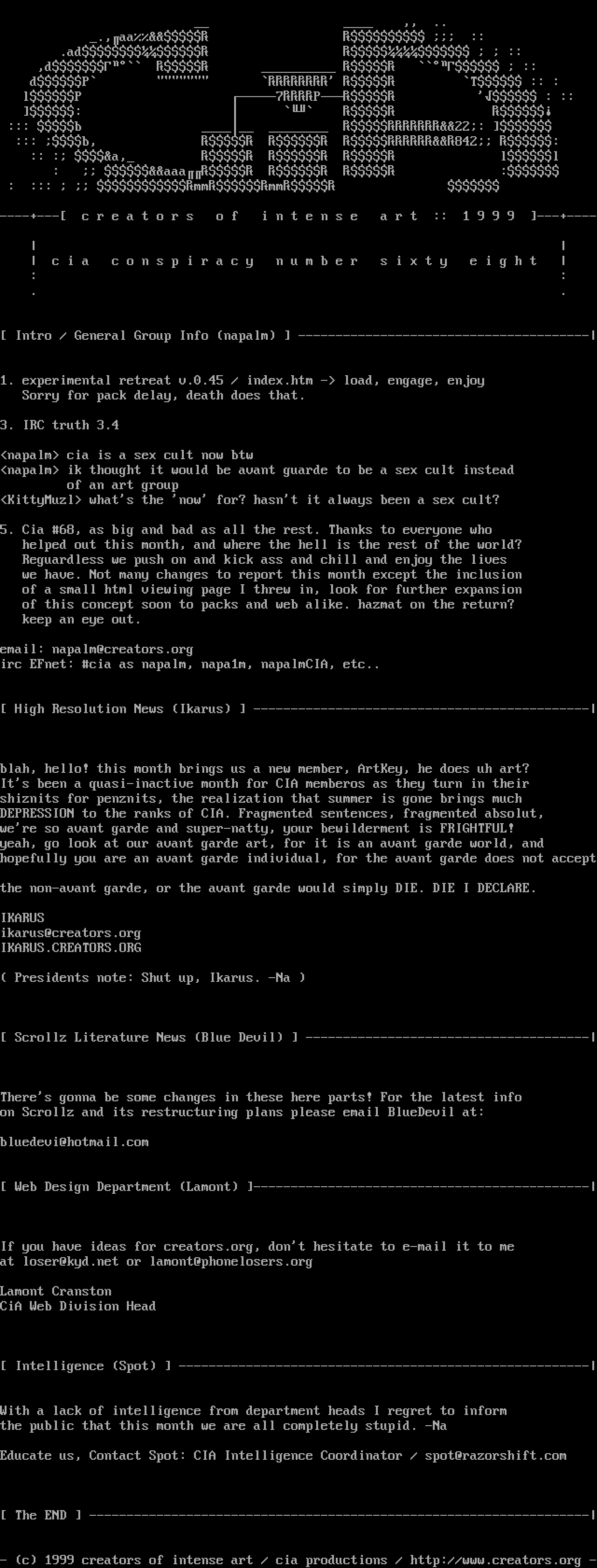 ----+--- c r e a t o r s o f i n t e n s e a r t :: 1 9 9 9 ---+----