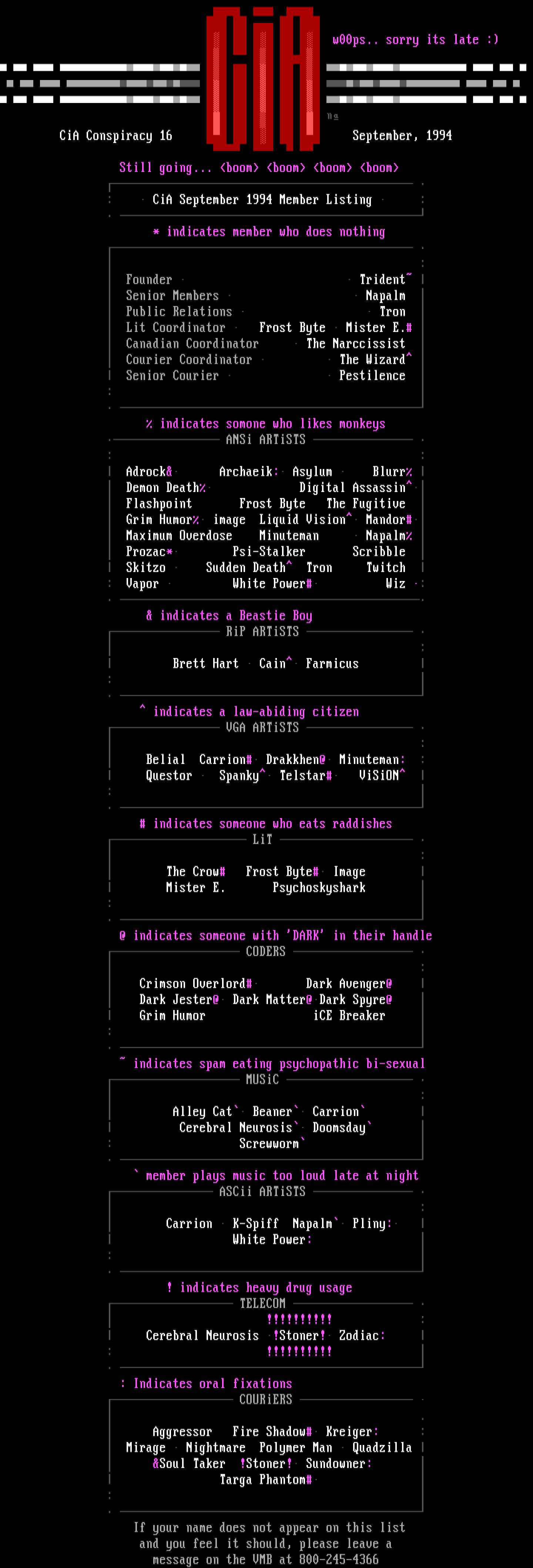 CiA Conspiracy 16 September, 1994