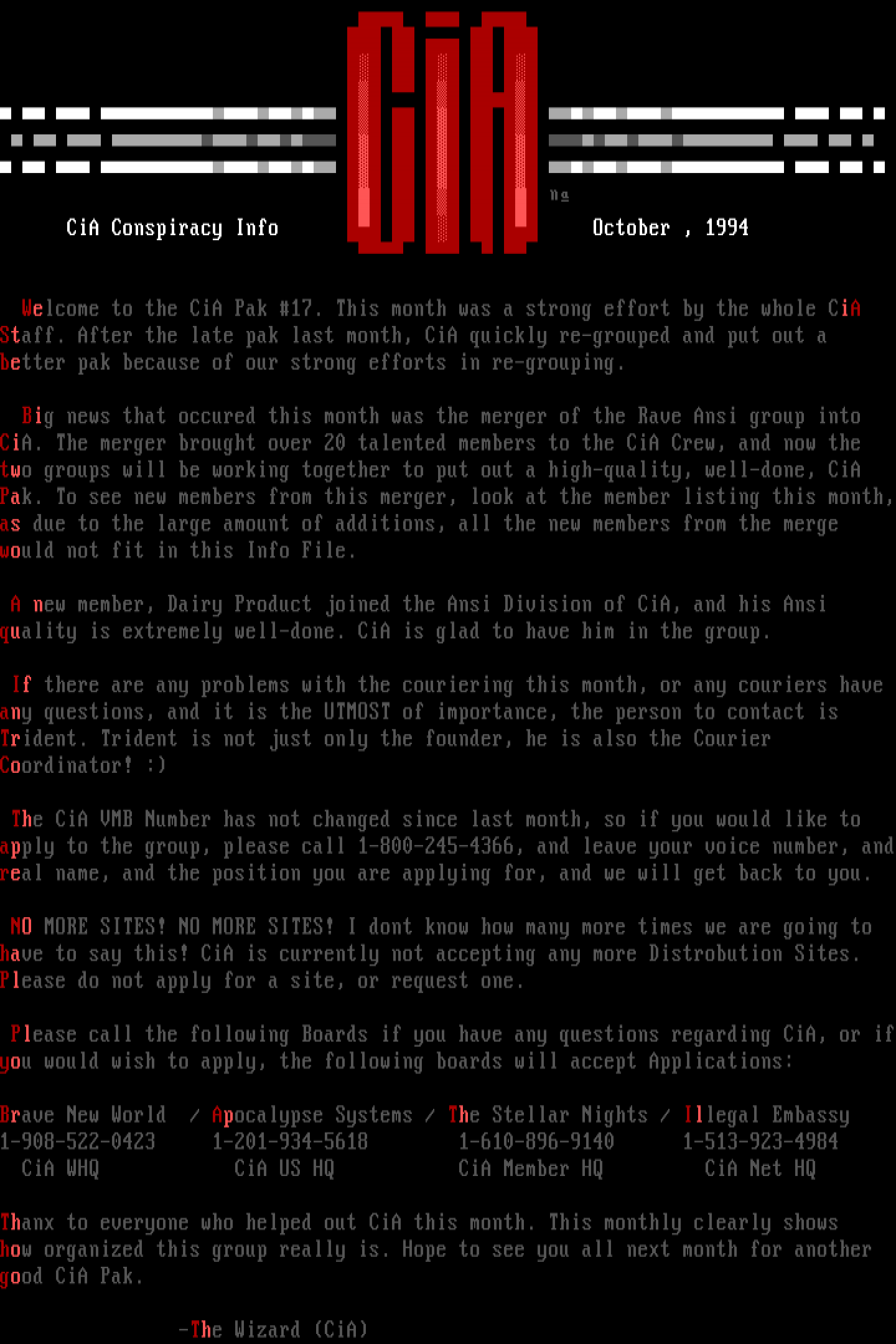 Thanx to everyone who helped out CiA this month. This monthly clearly shows