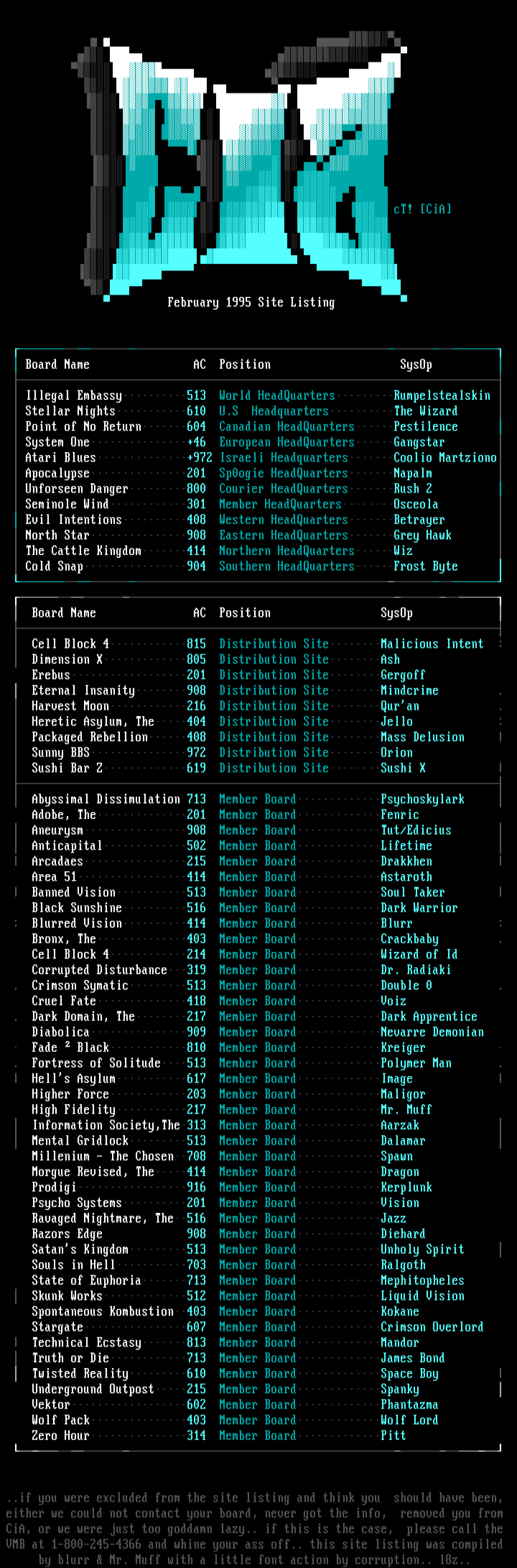 February 1995 Site Listing