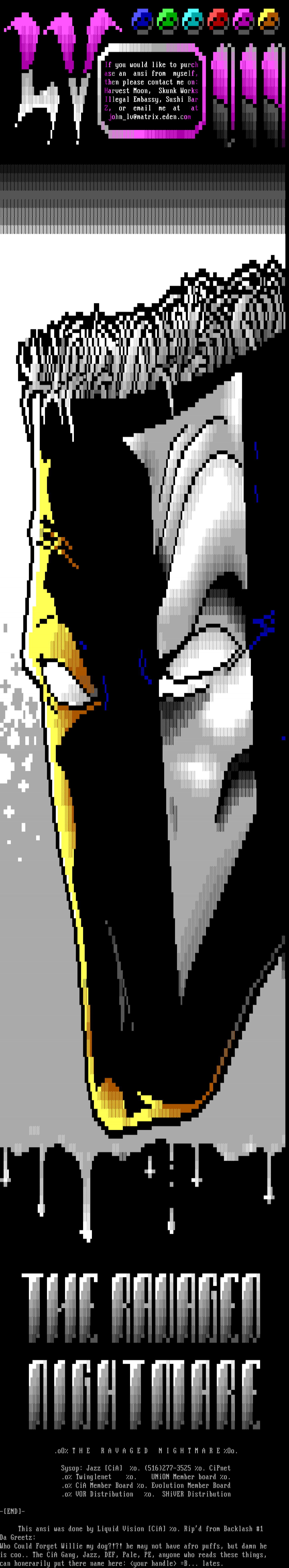 This ansi was done by Liquid Vision CiA o. Ripd from Backlash 1