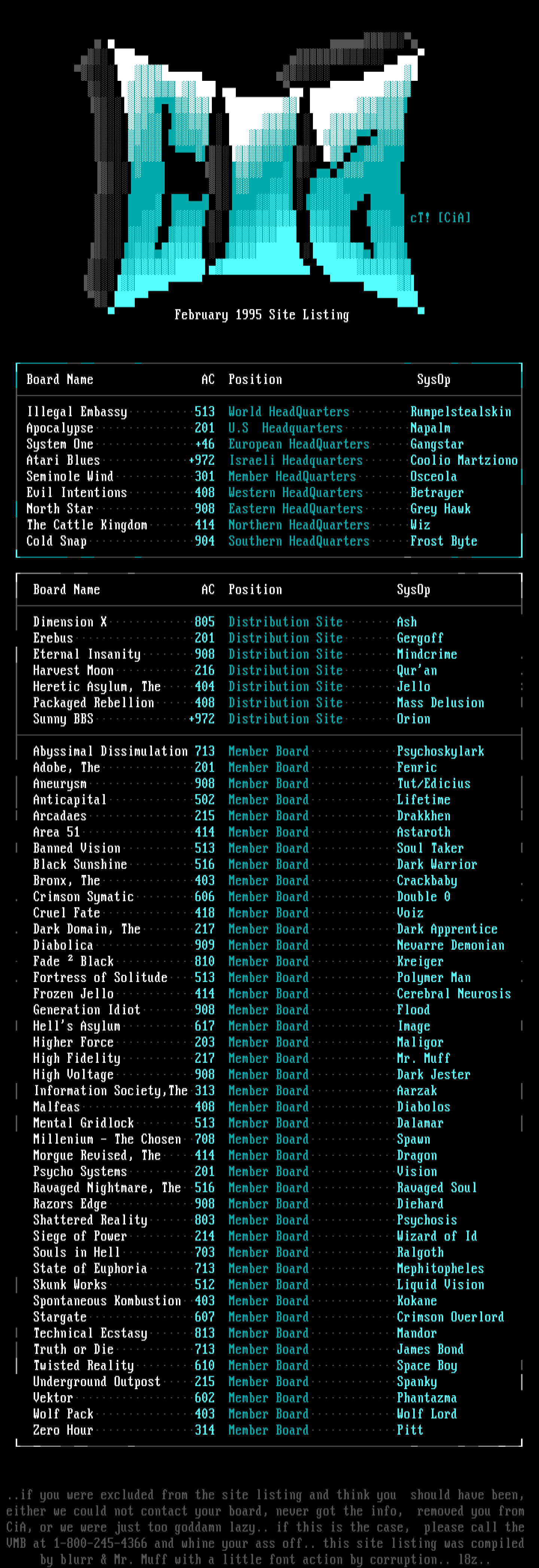 CiA, or we were just too goddamn lazy.. if this is the case, please call the