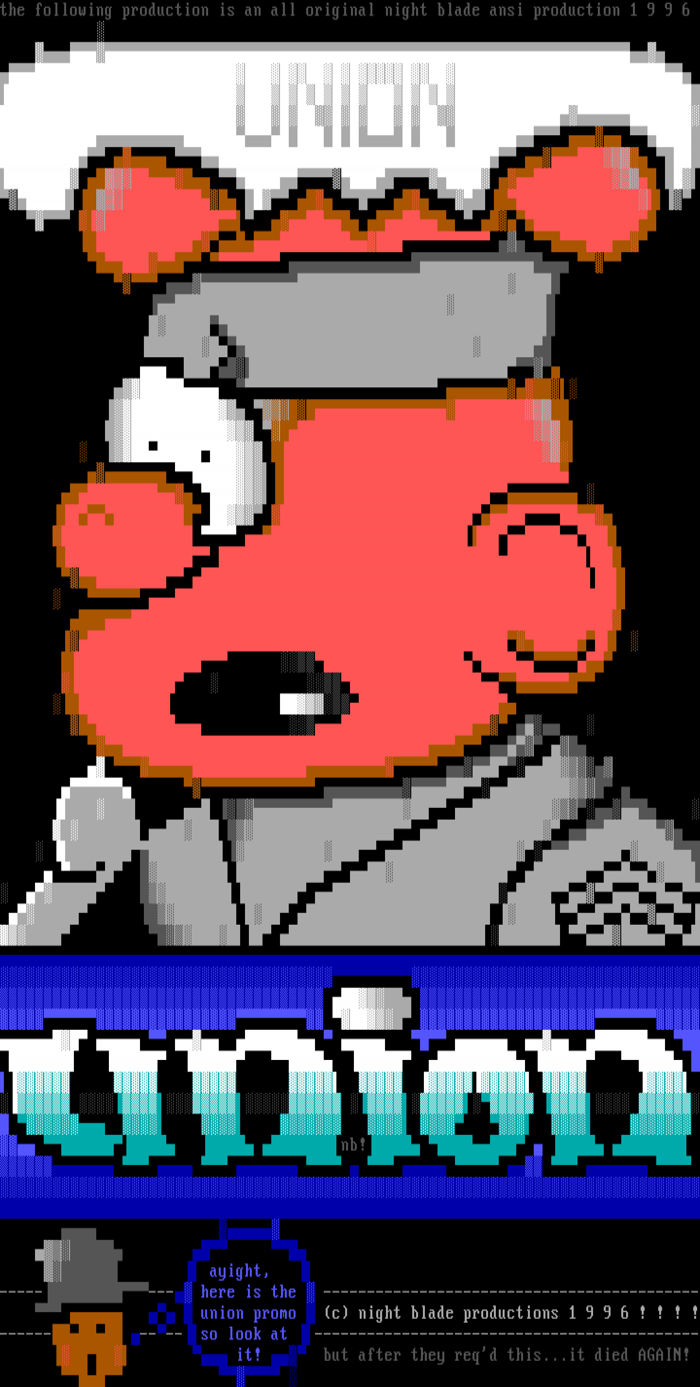 -------- here is the ------------------------------------------- union promo c night blade productions 1 9 9 6 ! ! ! !------ ----so look at -------------------------------------------- it! but after they reqd this...it died AGAIN!
