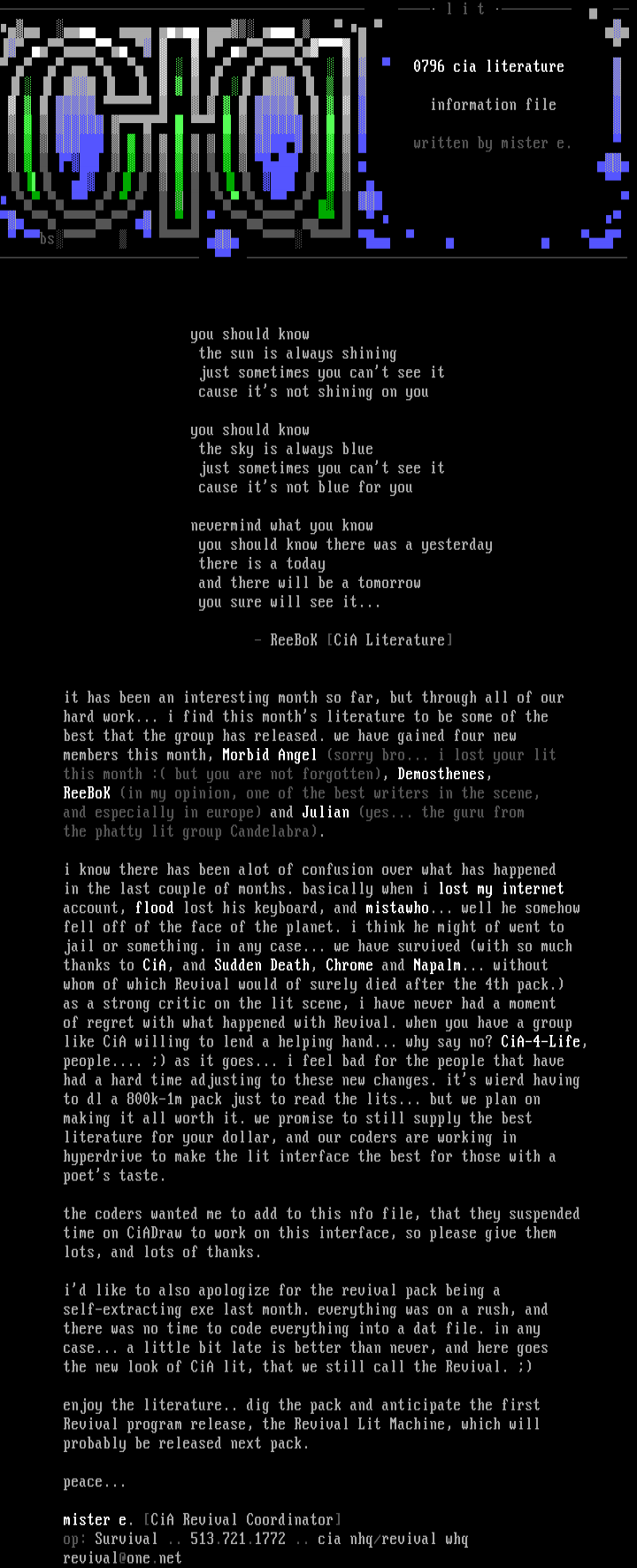 the new look of CiA lit, that we still call the Revival.