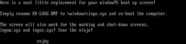 Simply rename XD-LOGO.BMP to windowslogo.sys and re-boot the computer.
