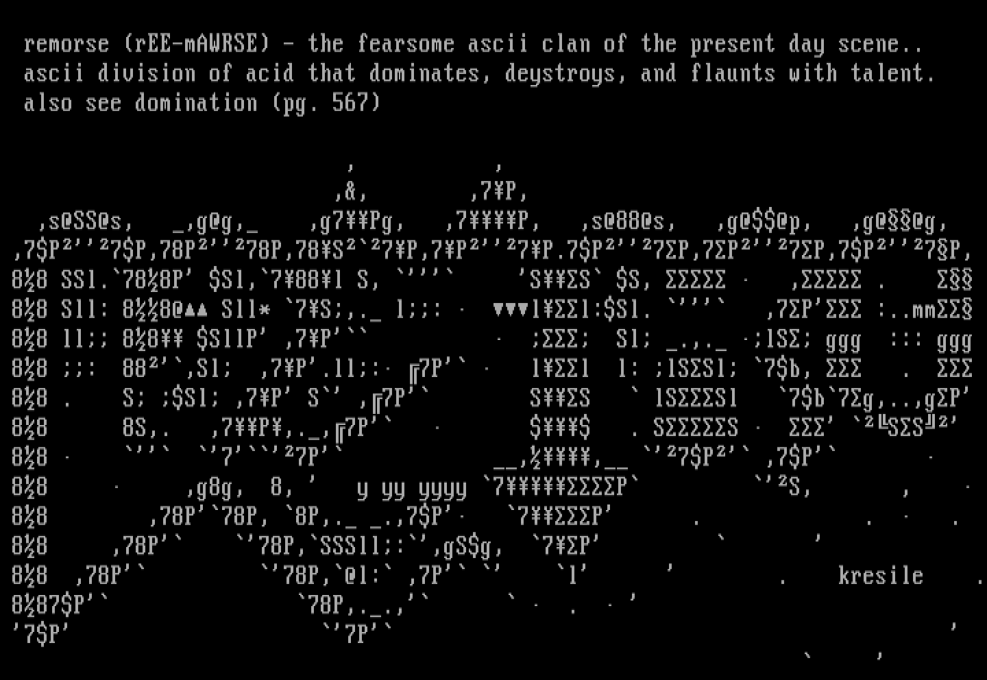 remorse rEE-mAWRSE - the fearsome ascii clan of the present day scene..
