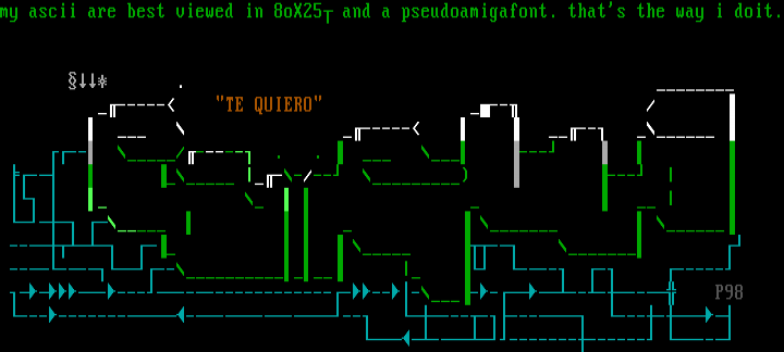 my ascii are best viewed in 8oX25 and a pseudoamigafont. thats the way i doit.