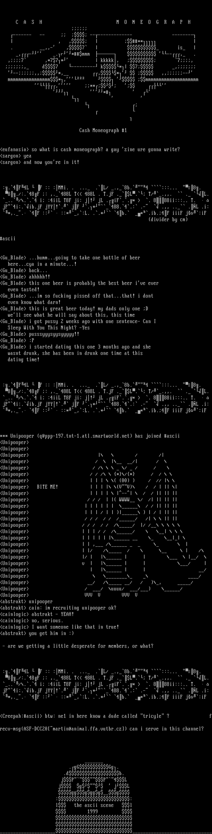 eufanasia so what is cash moneograph? a gay zine ure gonna write?