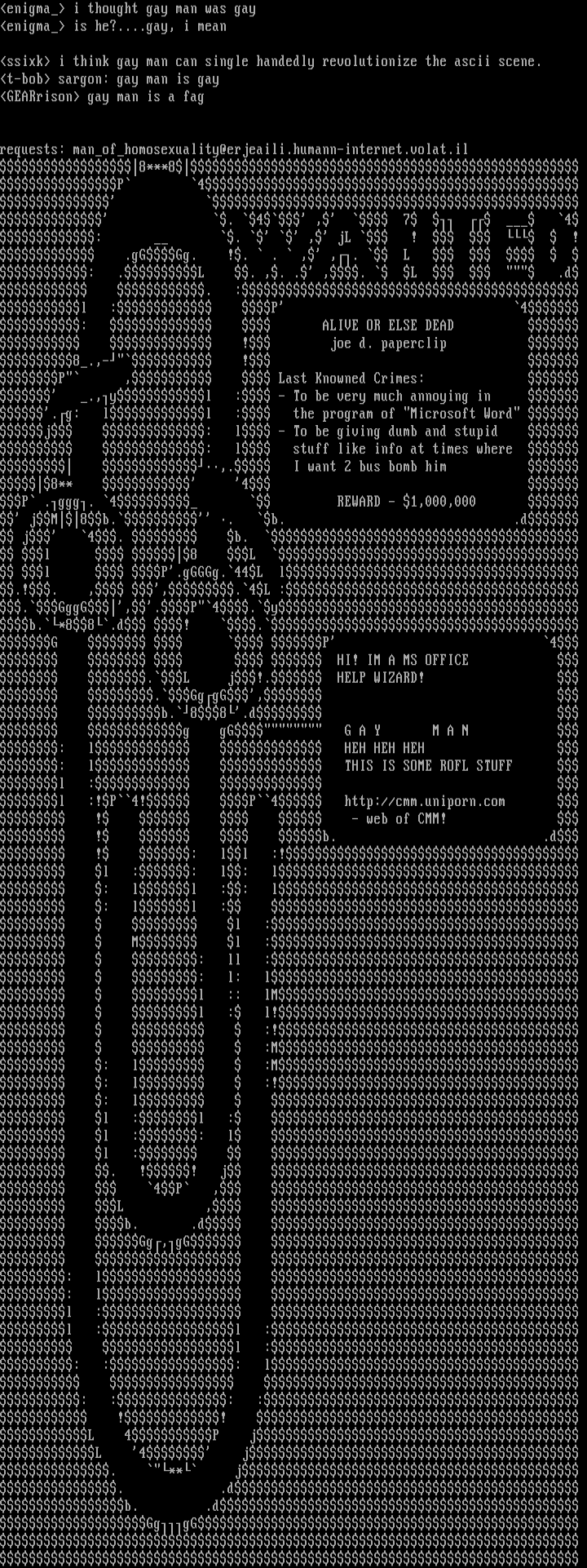 ssixk i think gay man can single handedly revolutionize the ascii scene.