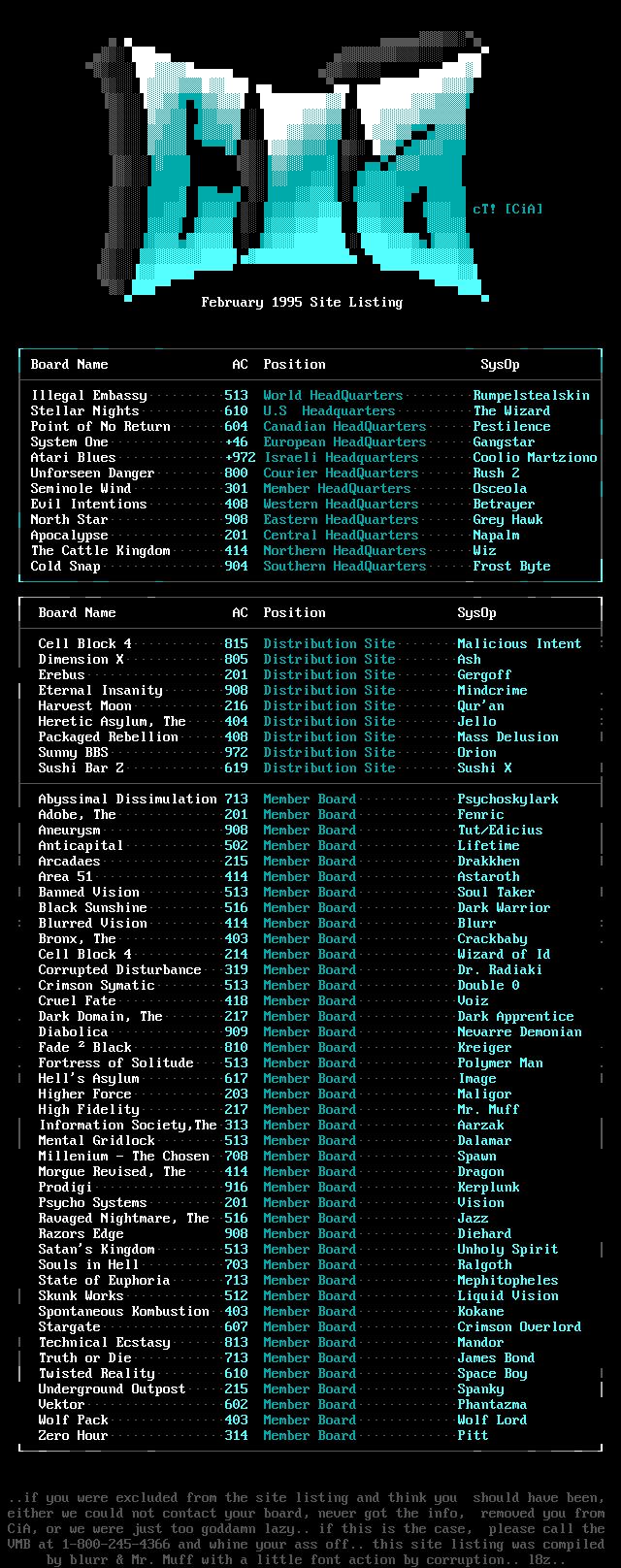 CiA, or we were just too goddamn lazy.. if this is the case, please call the