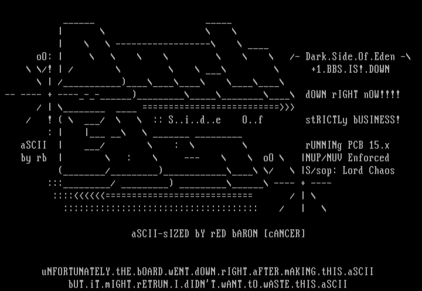uNFORTUNATELY.tHE.bOARD.wENT.dOWN.rIGHT.aFTER.mAKING.tHIS.aSCII