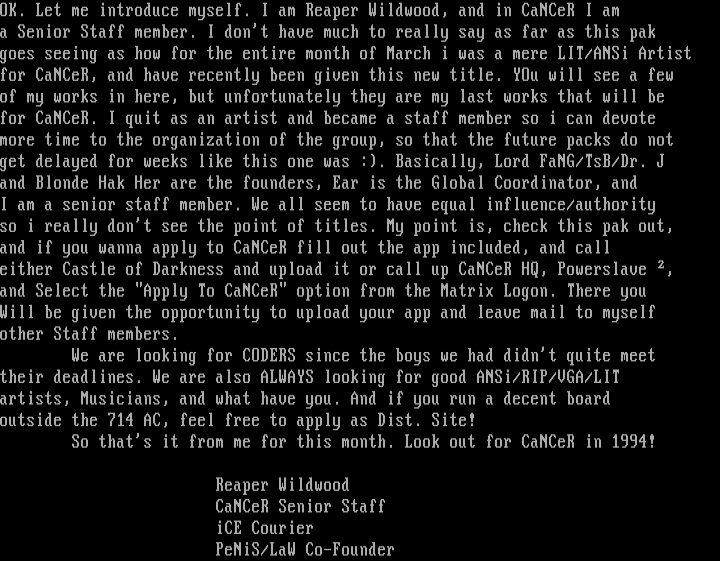 So thats it from me for this month. Look out for CaNCeR in 1994!