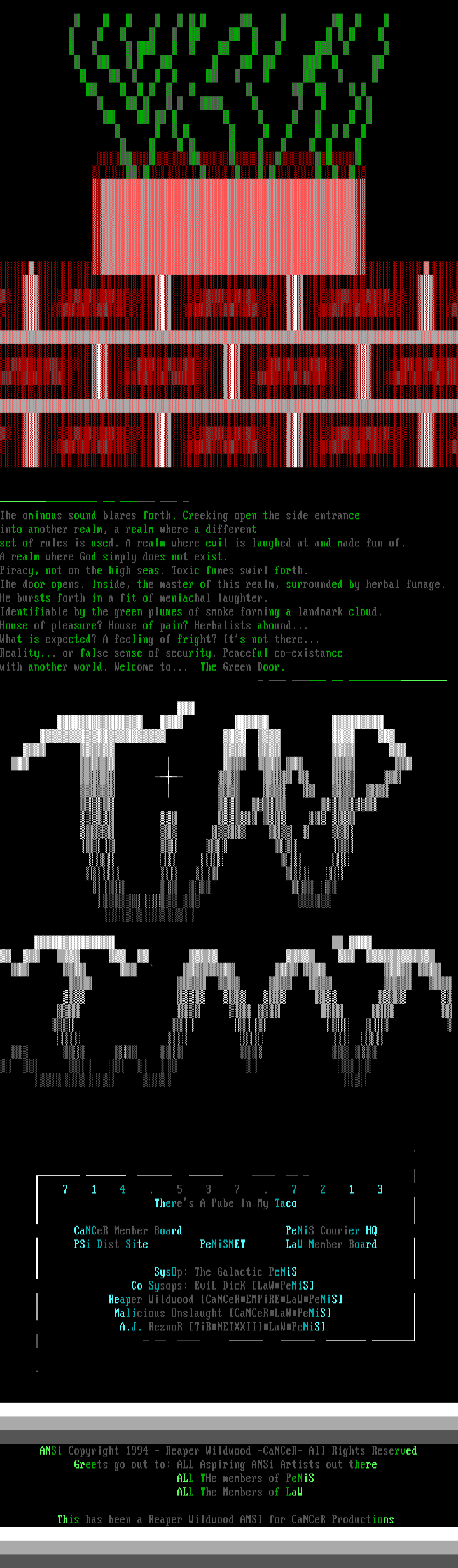 ANSi Copyright 1994 - Reaper Wildwood -CaNCeR- All Rights Reserved