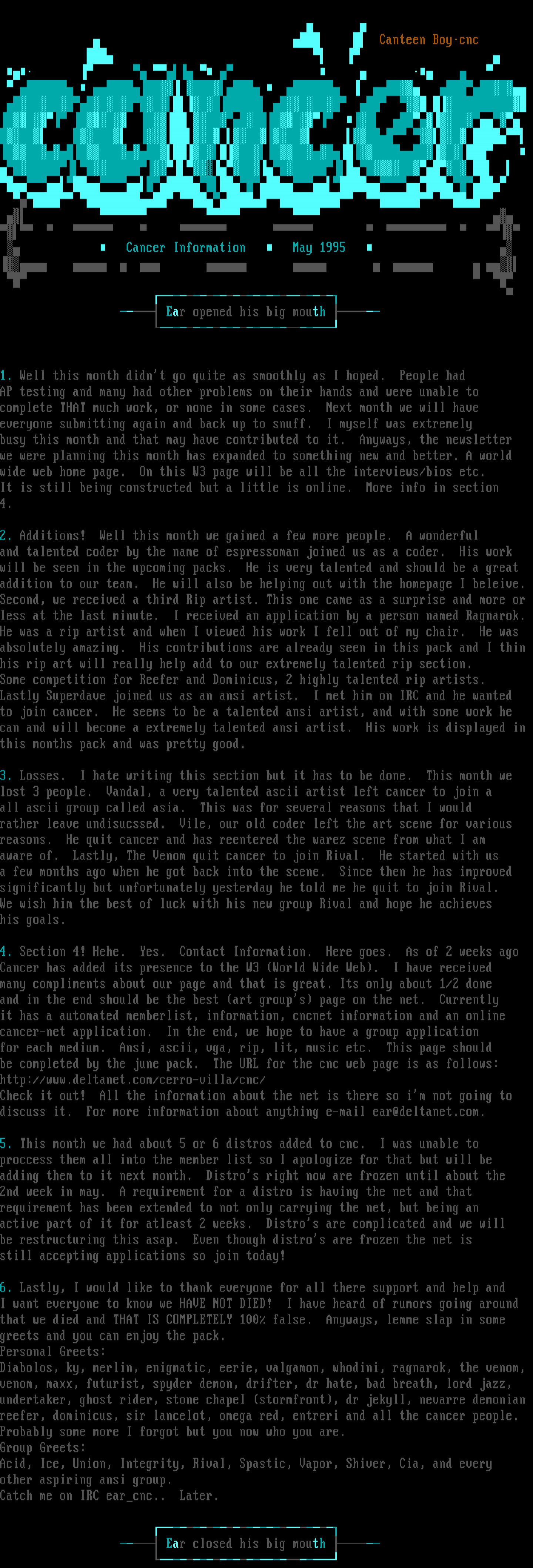 Lastly Superdave joined us as an ansi artist. I met him on IRC and