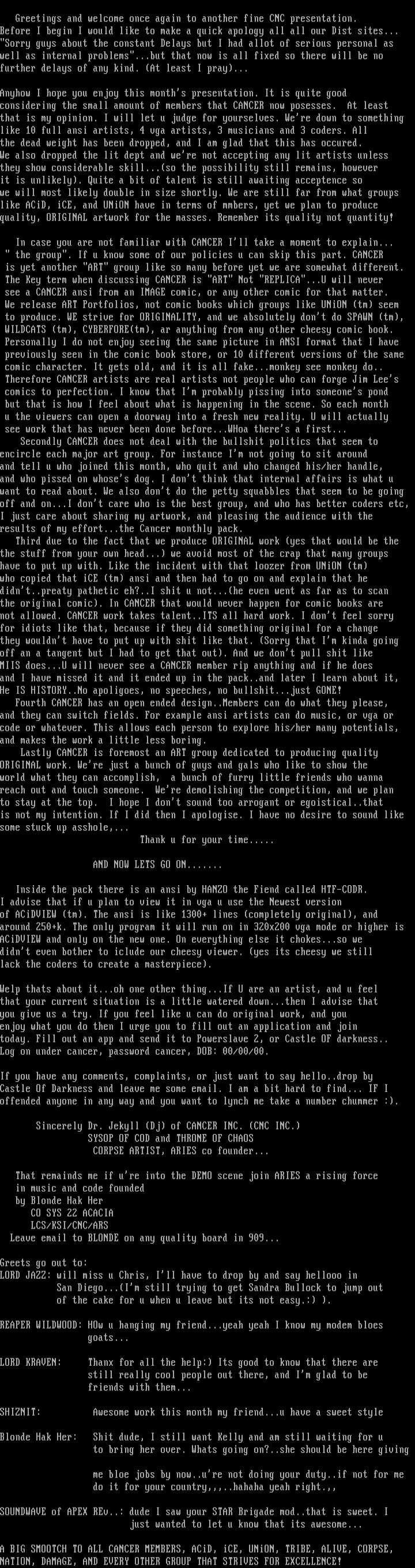 Lastly CANCER is foremost an ART group dedicated to producing quality