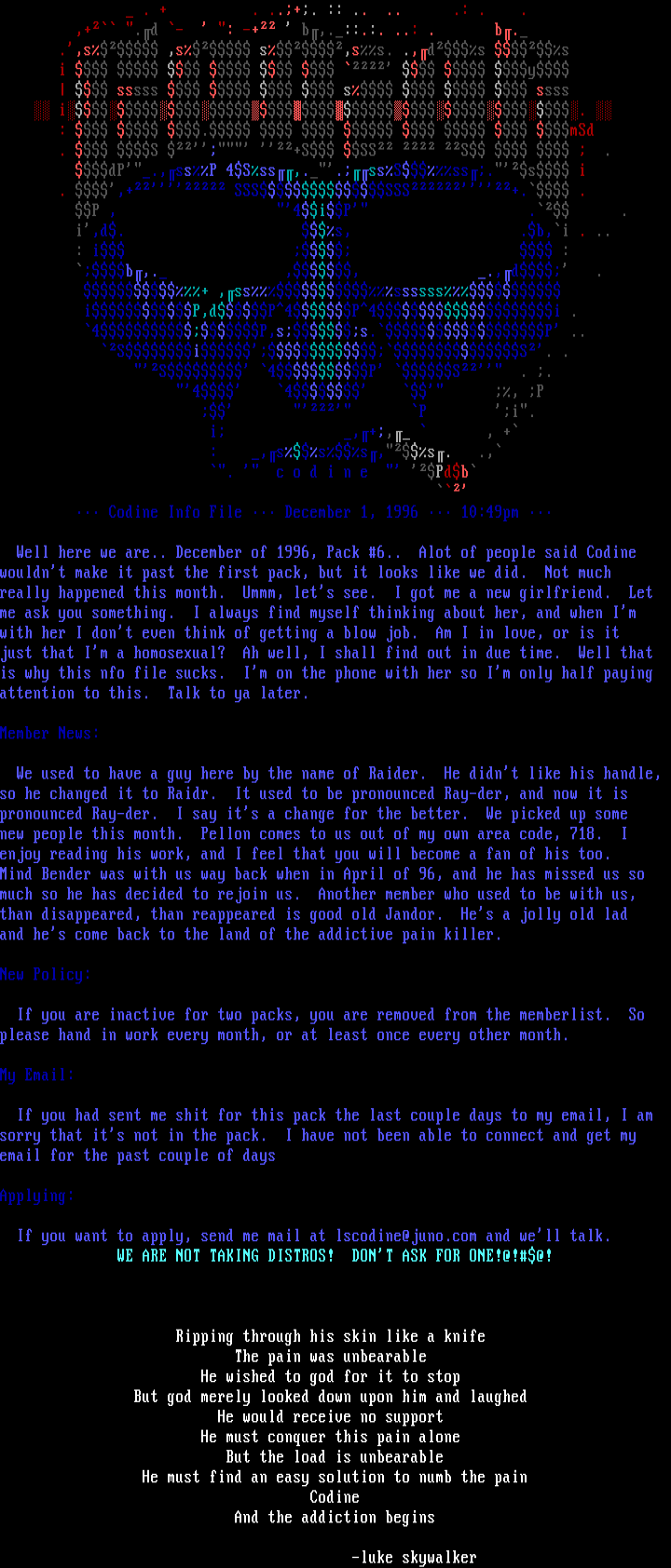 Codine Info File December 1, 1996 10:49pm