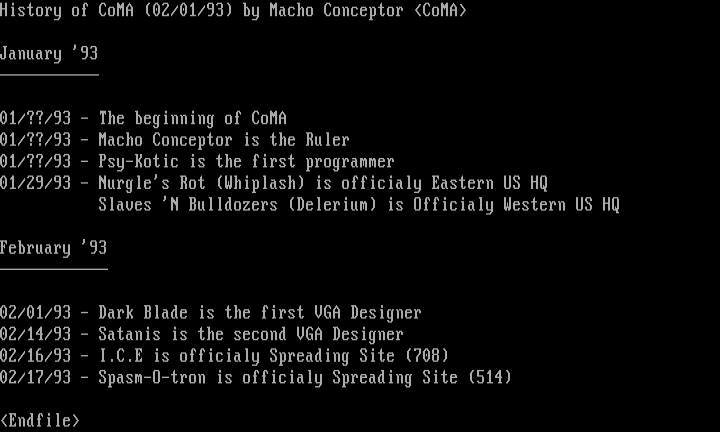 History of CoMA 02/01/93 by Macho Conceptor CoMA