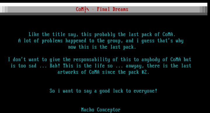 to anybody of CoMA but is too sad ... Bah! This is the life so