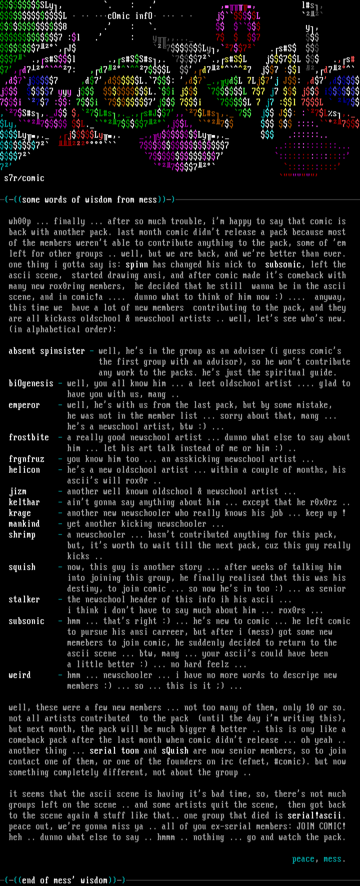 ascii scene, started drawing ansi, and after comic made its comeback with