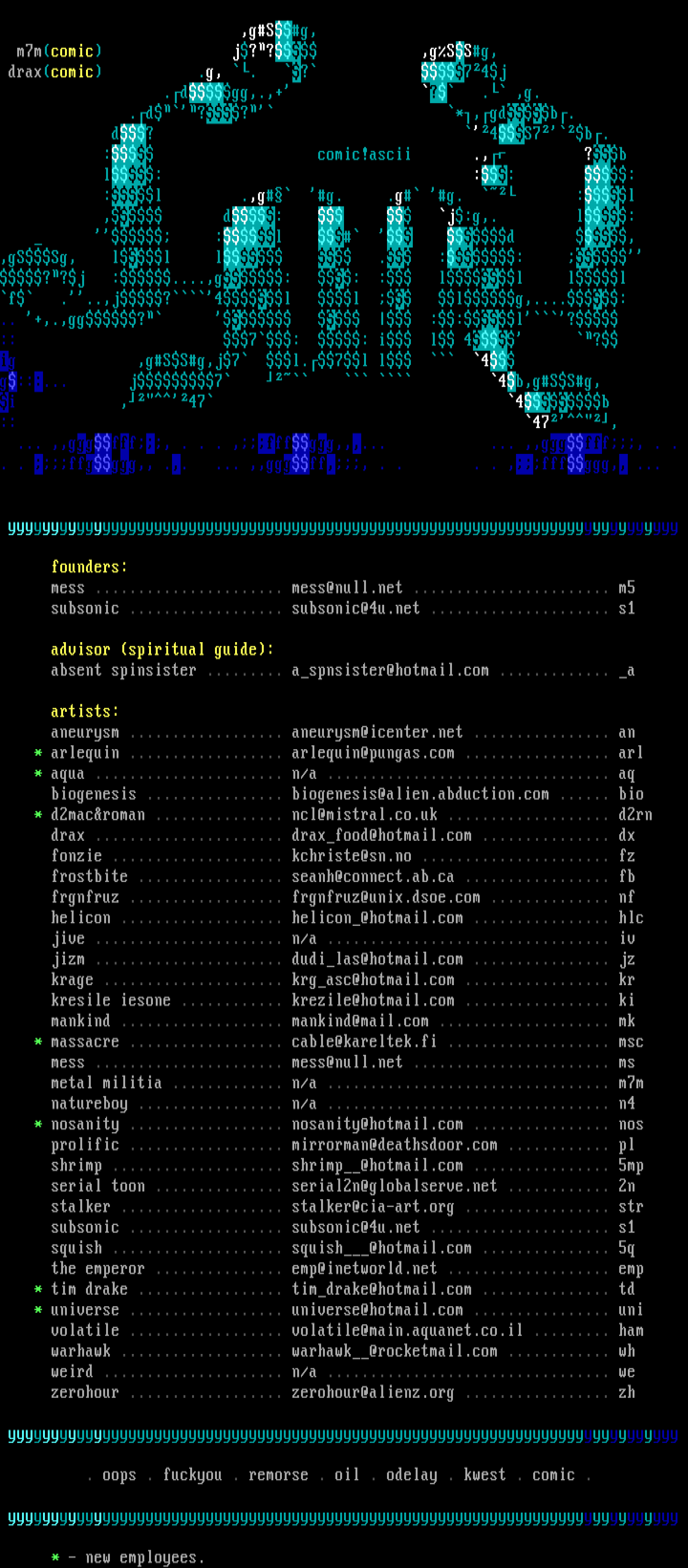 . oops . fuckyou . remorse . oil . odelay . kwest . comic .