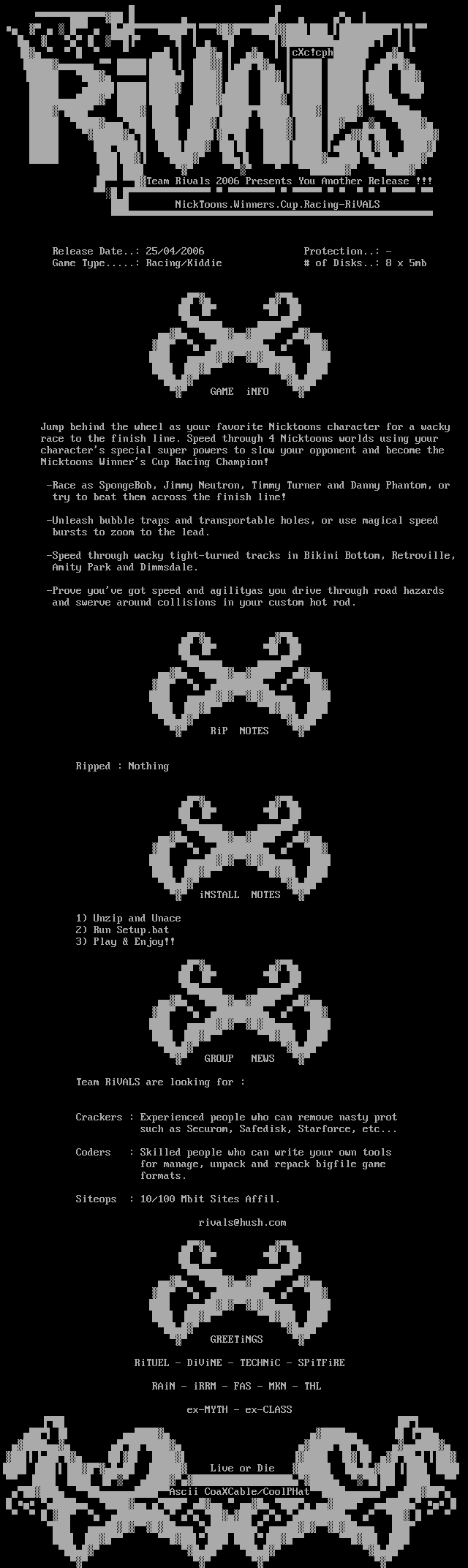 Game Type.....: Racing/Kiddie of Disks..: 8 x 5mb