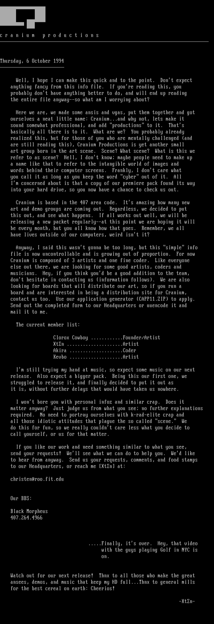 Cranium is composed of 3 artists and one fine coder. Like everyone