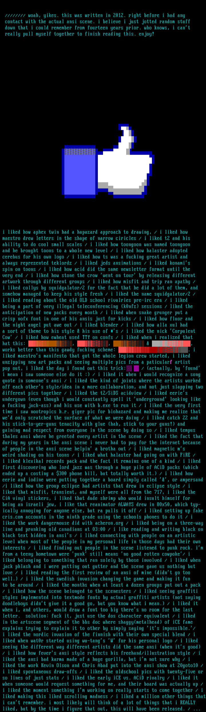 contact with the actual ansi scene. i believe i just jotted random stuff