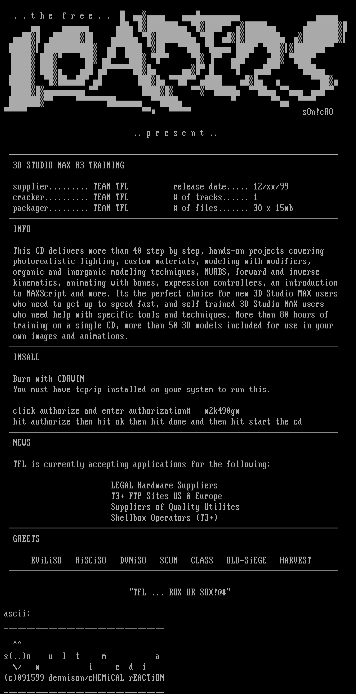 supplier......... TEAM TFL release date..... 12/xx/99