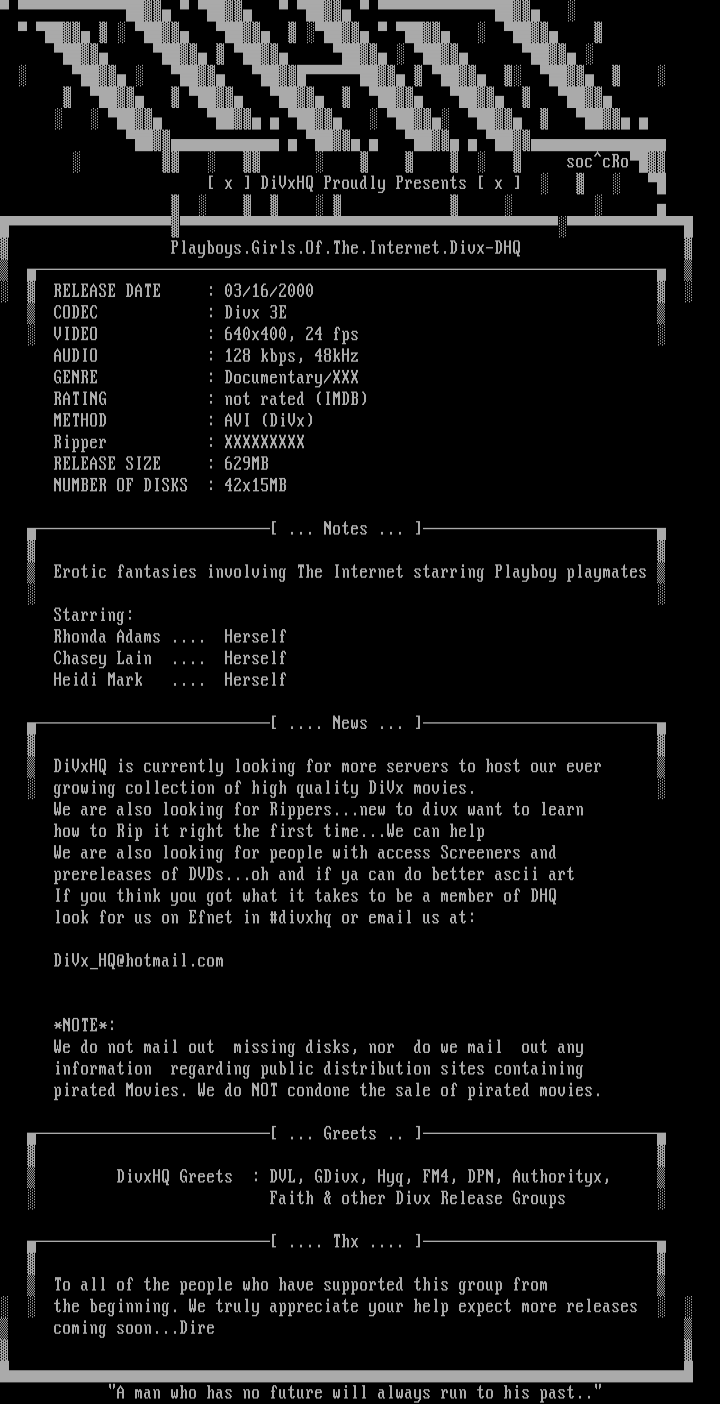 DivxHQ Greets : DVL, GDivx, Hyq, FM4, DPN, Authorityx,