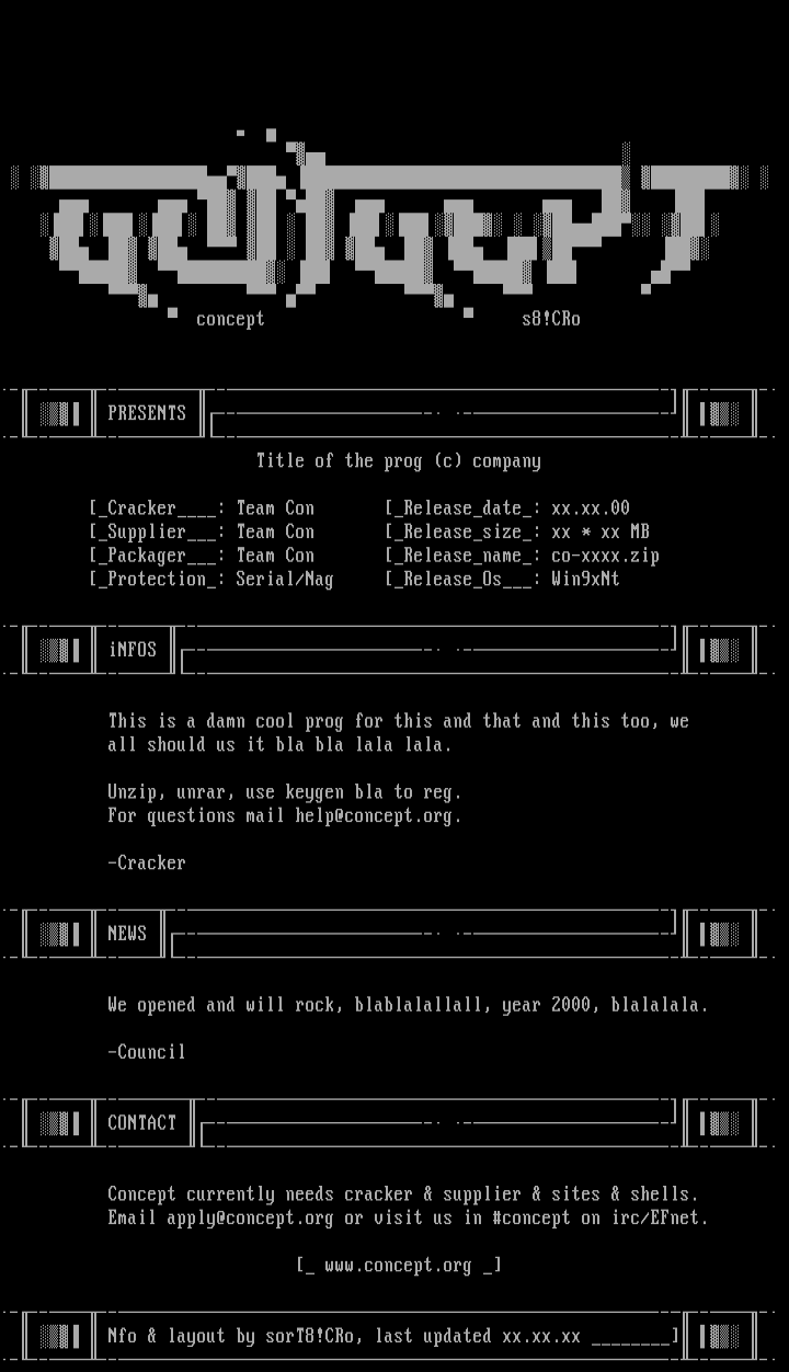 Nfo layout by sorT8!CRo, last updated xx.xx.xx