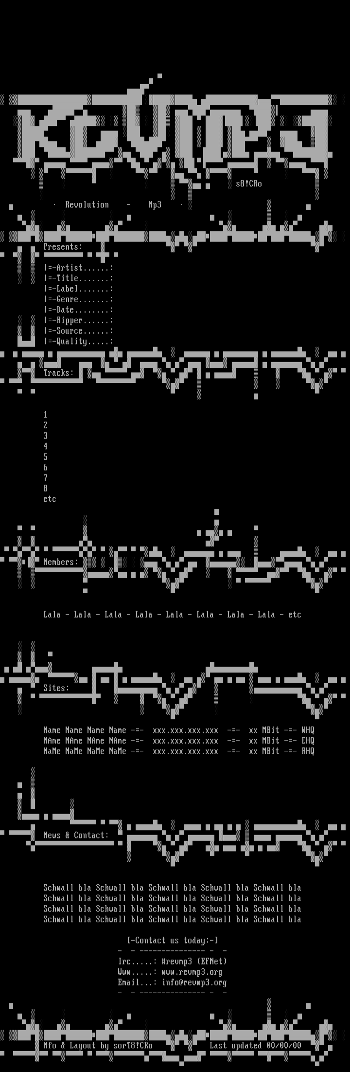 Nfo Layout by sorT8!CRo Last updated 00/00/00