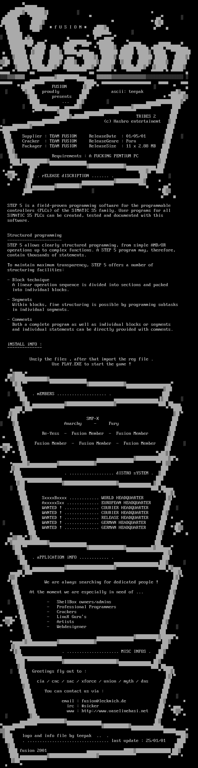 Supplier : TEAM FUSION ReleaseDate : 01/05/01