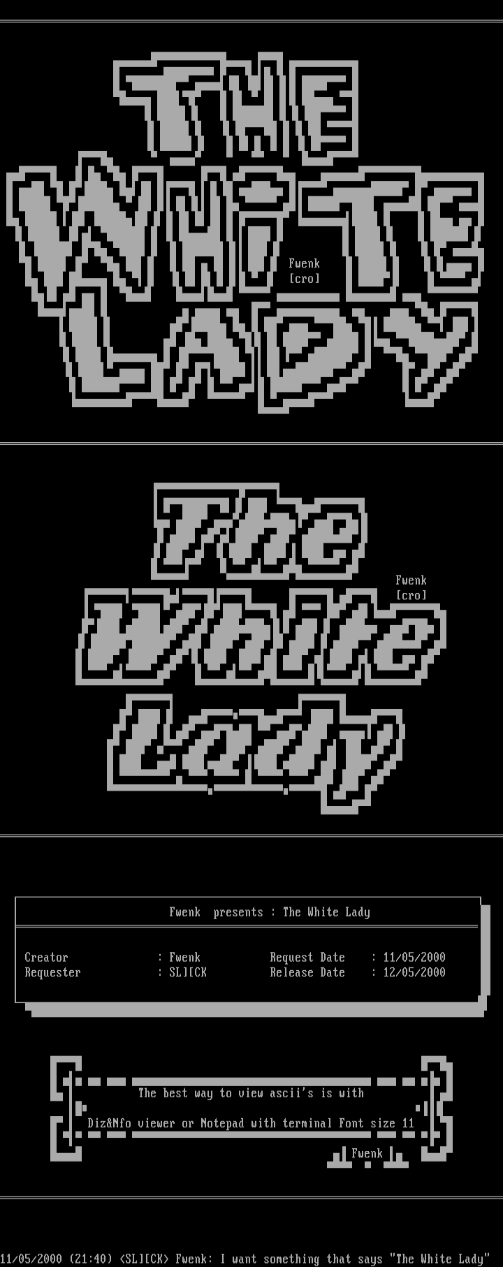 11/05/2000 21:40 SLCK Fwenk: I want something that says The White Lady