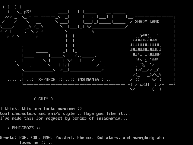 Greets: PGN, CRO, NMG, Puschel, Phenox, Radiators, and everybody who