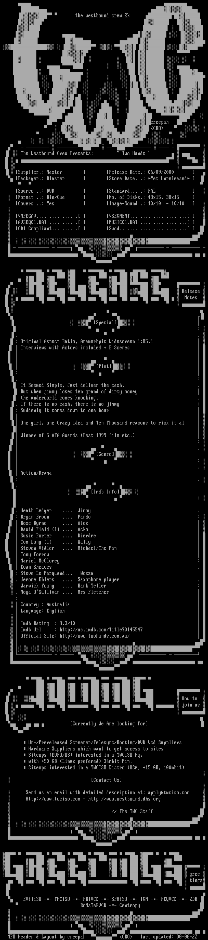 NFO Header Layout by creepah CRO last updated: 00-06-22