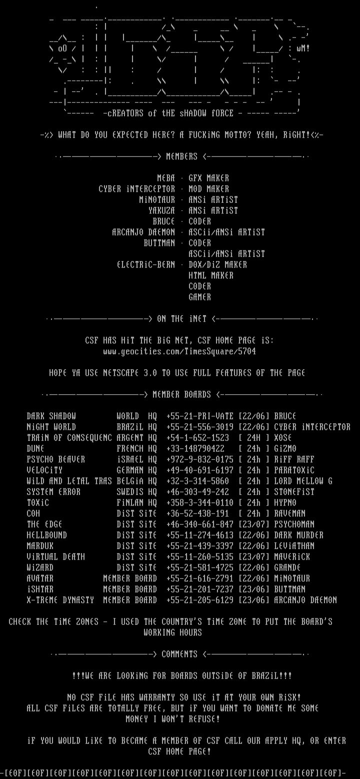 ------ -cREATORS of tHE sHADOW fORCE - ----- -----