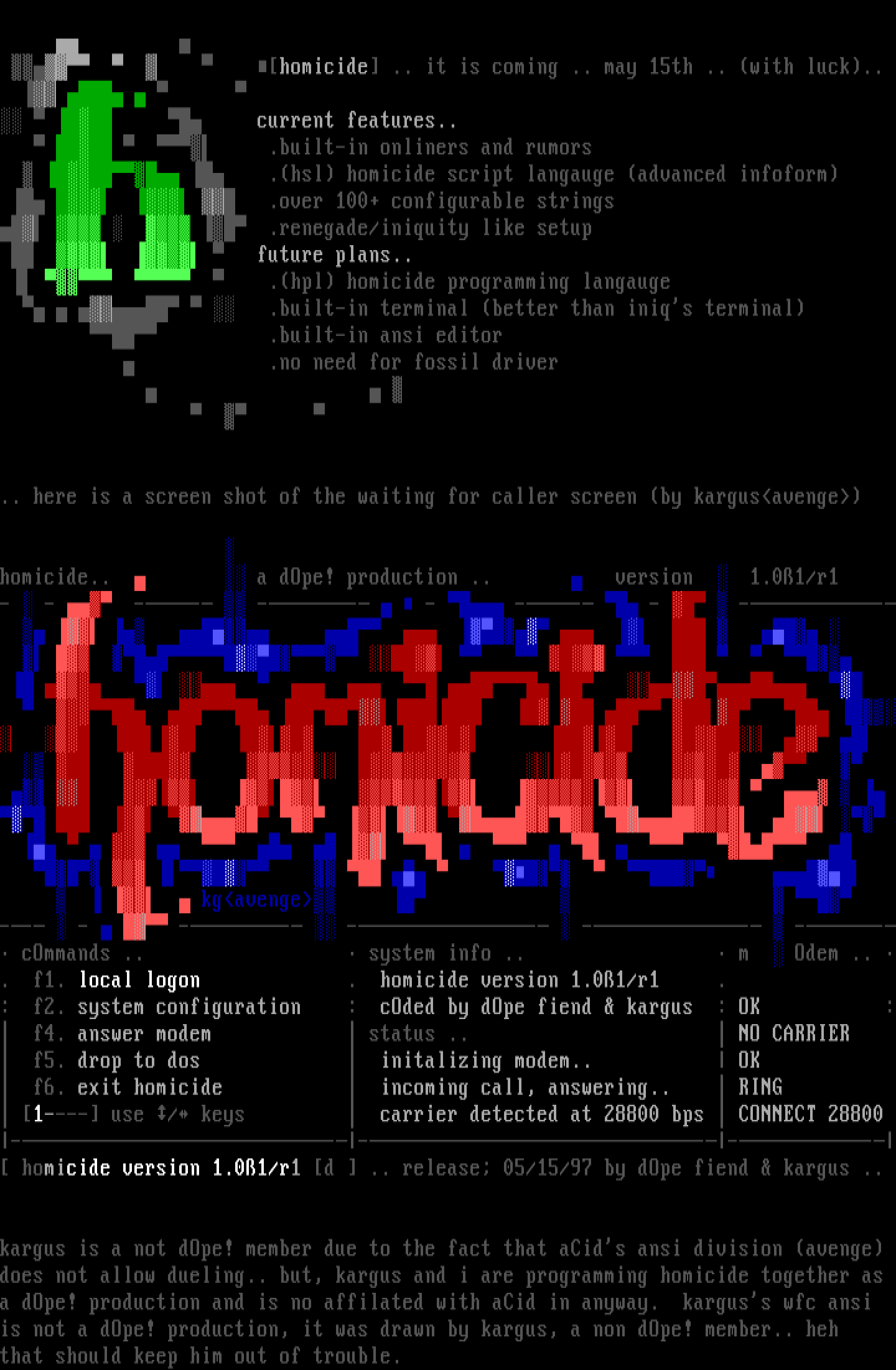 homicide version 1.01/r1 d .. release 05/15/97 by dOpe fiend kargus ..
