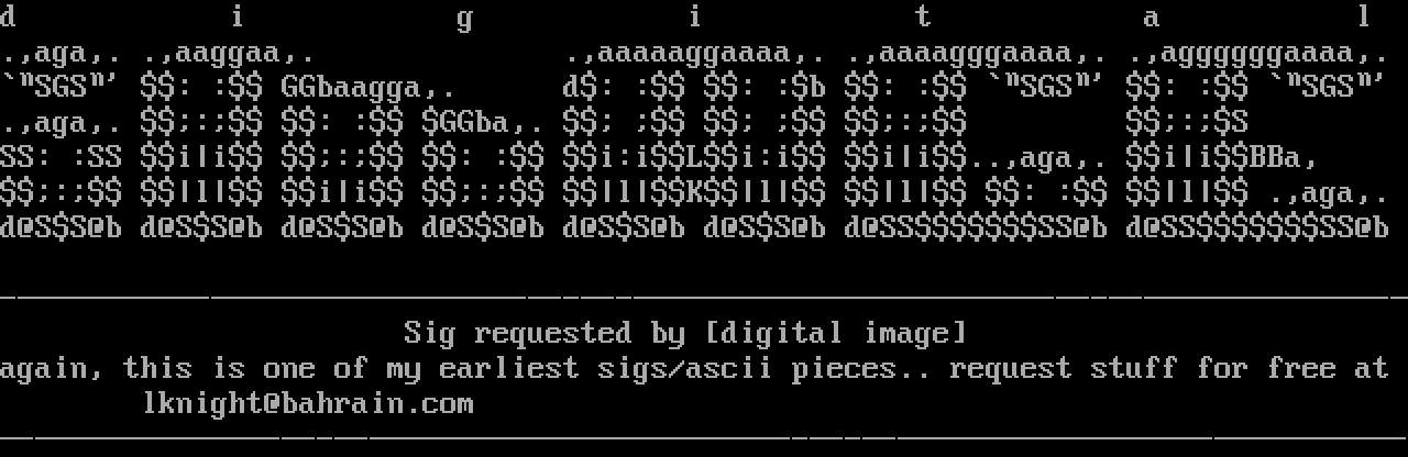 again, this is one of my earliest sigs/ascii pieces.. request stuff for free at