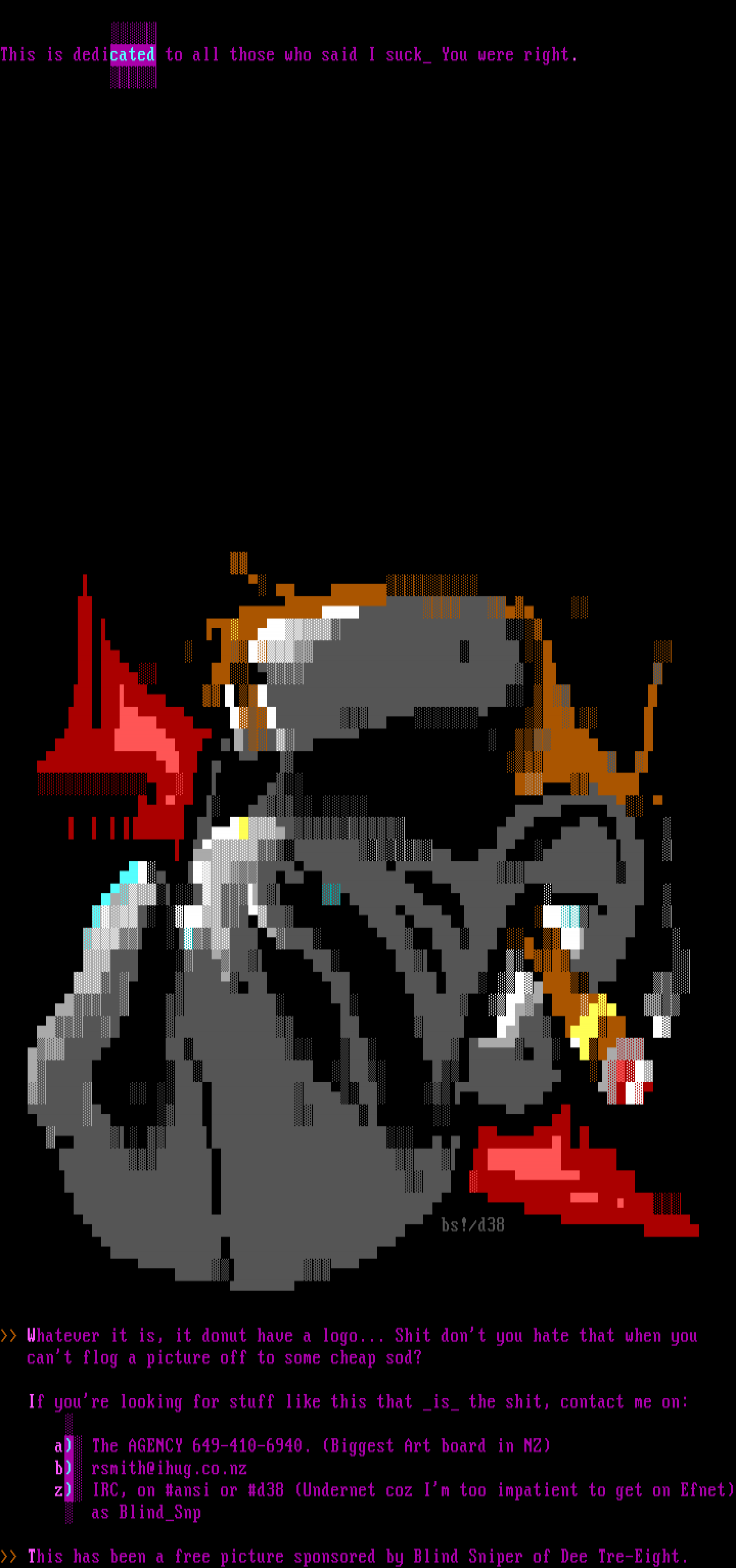 z IRC, on ansi or d38 Undernet coz Im too impatient to get on Efnet as BlindSnp