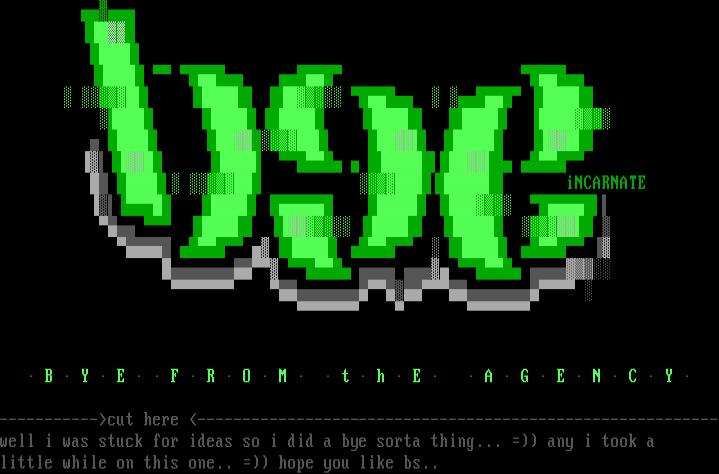 -----------cut here ----------------------------------------------------------well i was stuck for ideas so i did a bye sorta thing... any i took a