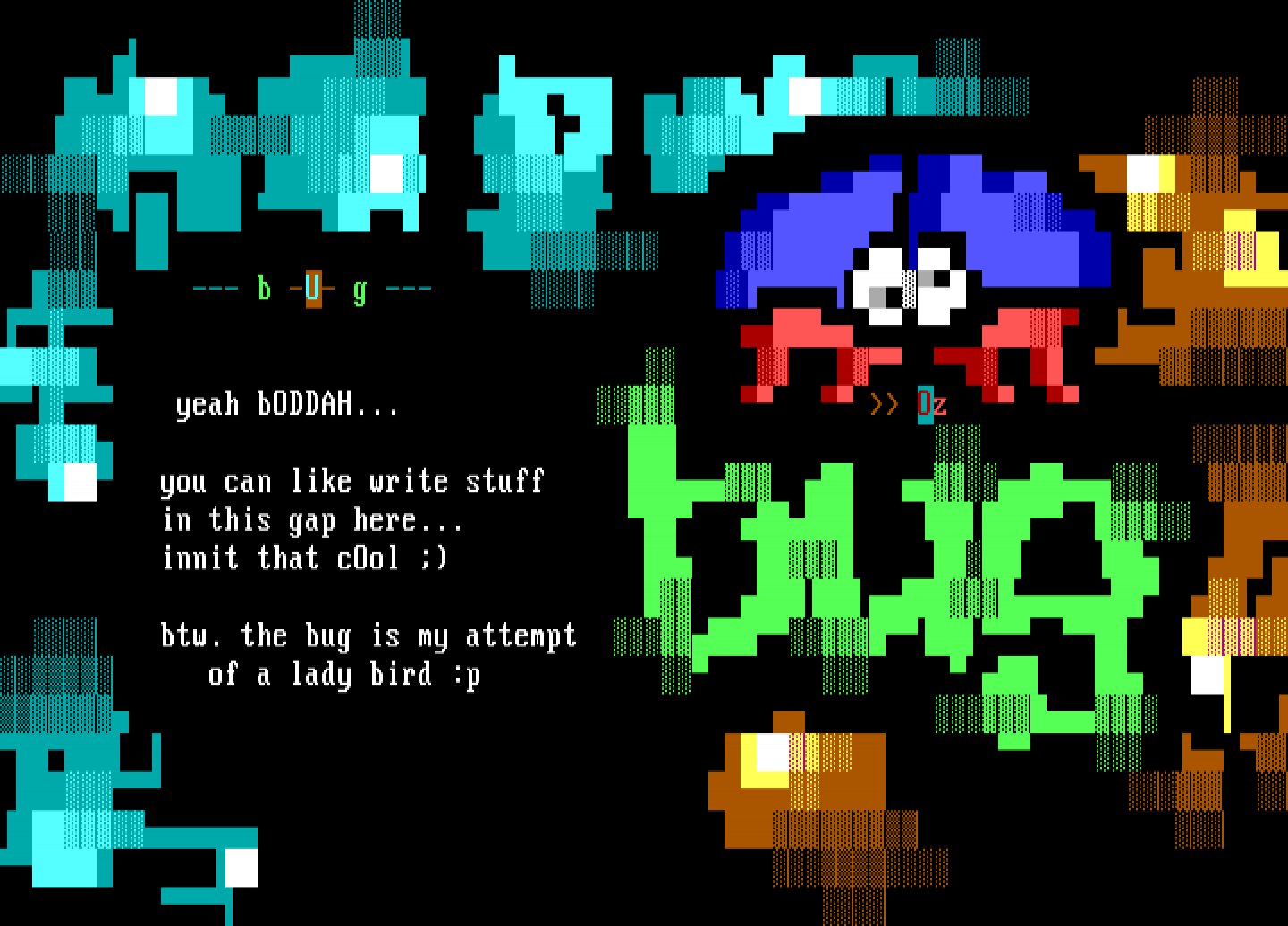 you can like write stuff in this gap here... innit that cOol btw. the bug is my attempt