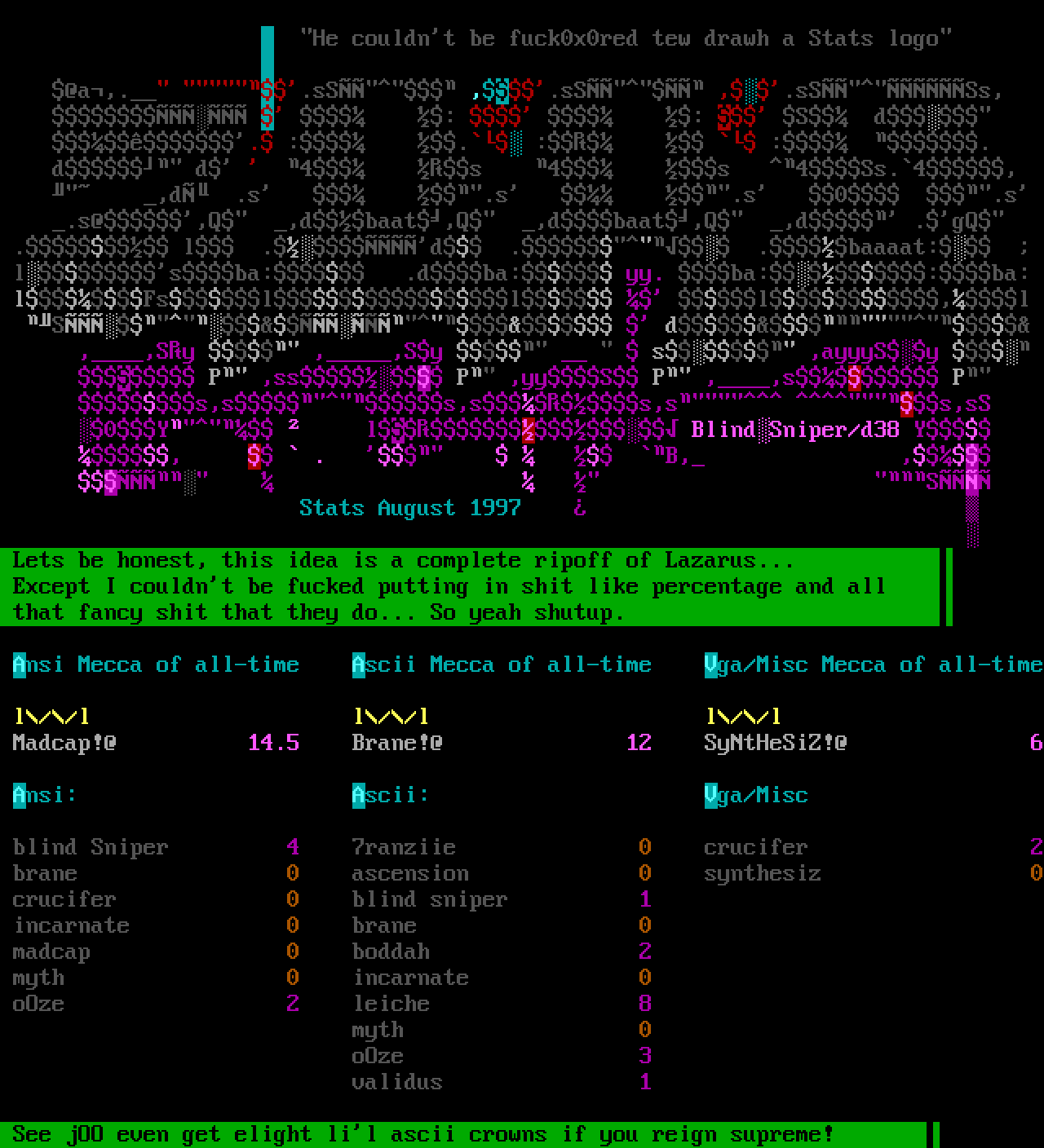 Ansi Mecca of all-time Ascii Mecca of all-time Vga/Misc Mecca of all-time