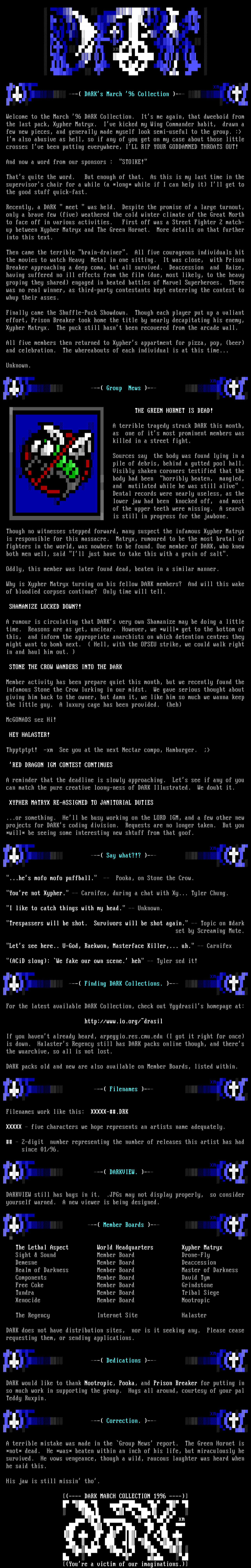 Welcome to the March 96 DARK Collection. Its me again, that dweeboid from