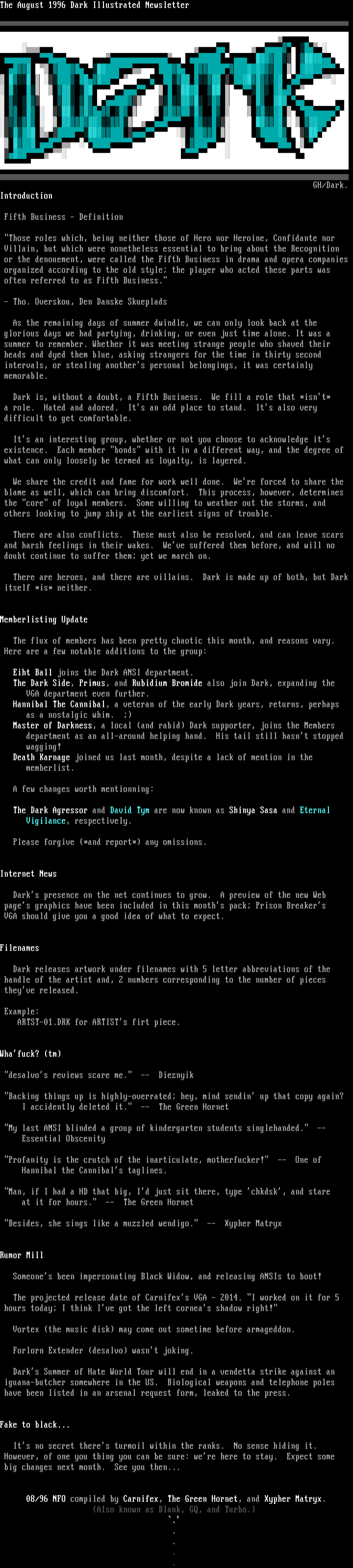 The August 1996 Dark Illustrated Newsletter
