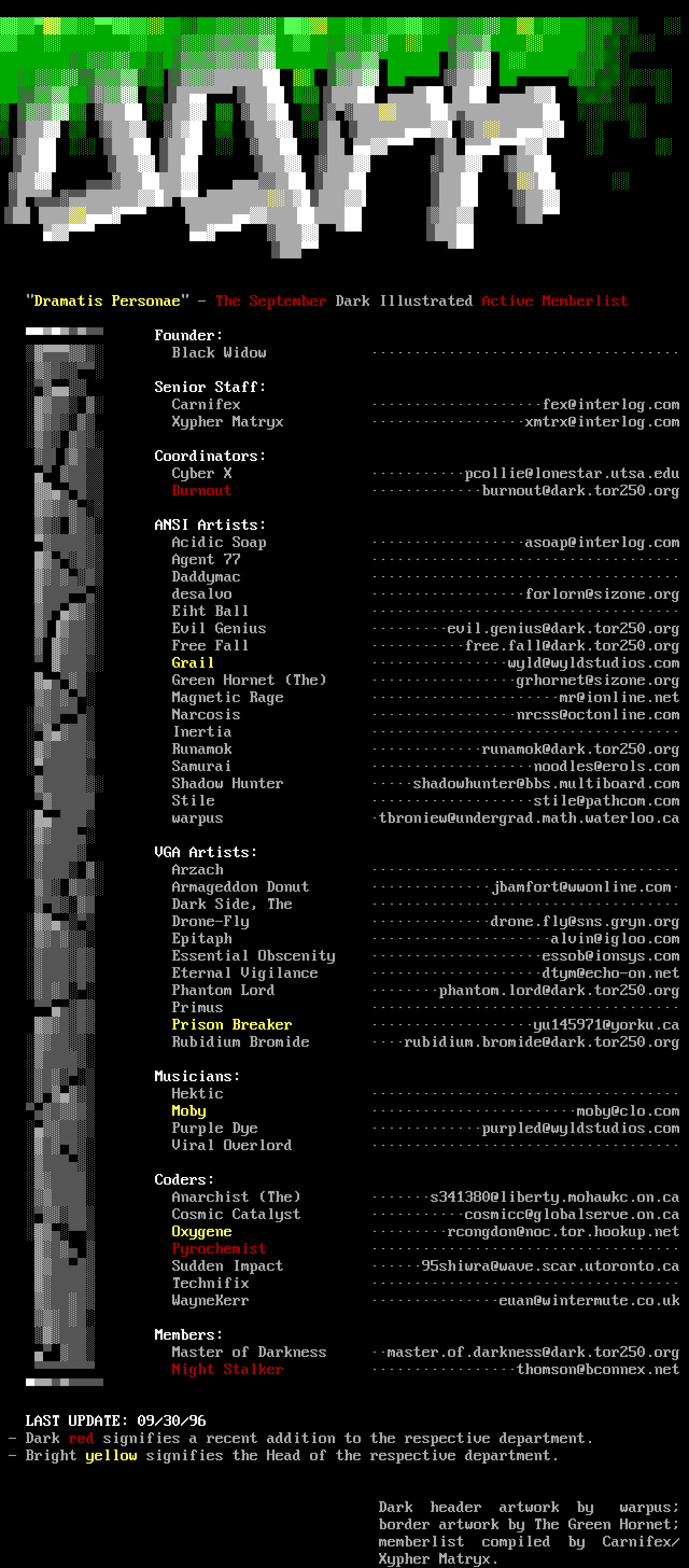 Dramatis Personae - The September Dark Illustrated Active Memberlist