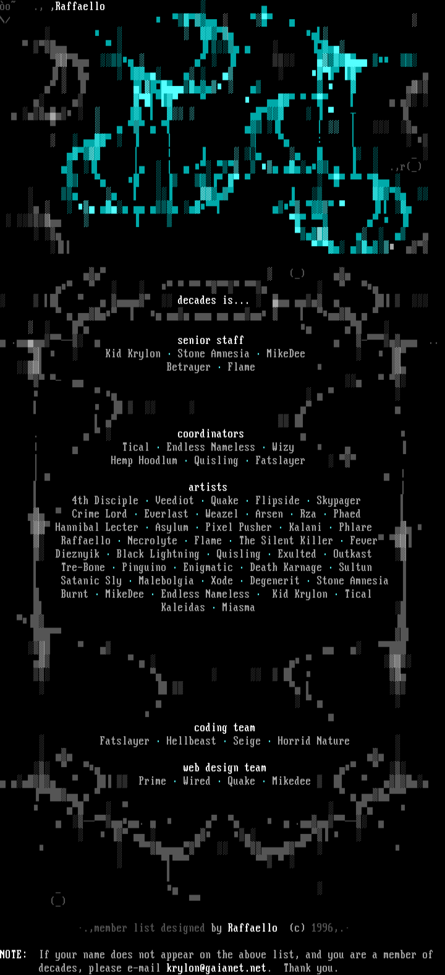 NOTE: If your name does not appear on the above list, and you are a member of decades, please e-mail krylon@gaianet.net. Thank you.
